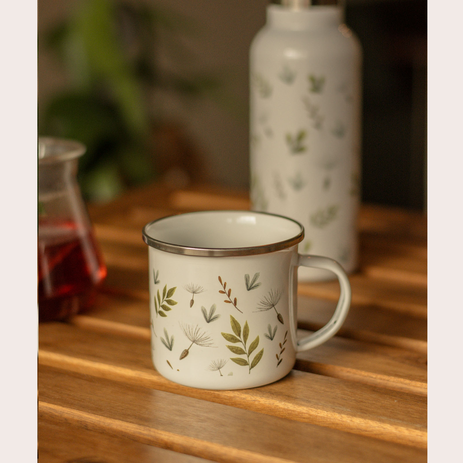Cană din metal durabil, cu o capacitate de 380 ml, ideală pentru uz zilnic sau activități în aer liber. Suprafața este decorată cu un model floral aplicat prin sublimare, oferind un imprimeu de înaltă calitate, rezistent la uzură și spălări repetate. Combinația dintre designul practic și estetica florală o face potrivită atât pentru acasă, cât și pentru cadouri.