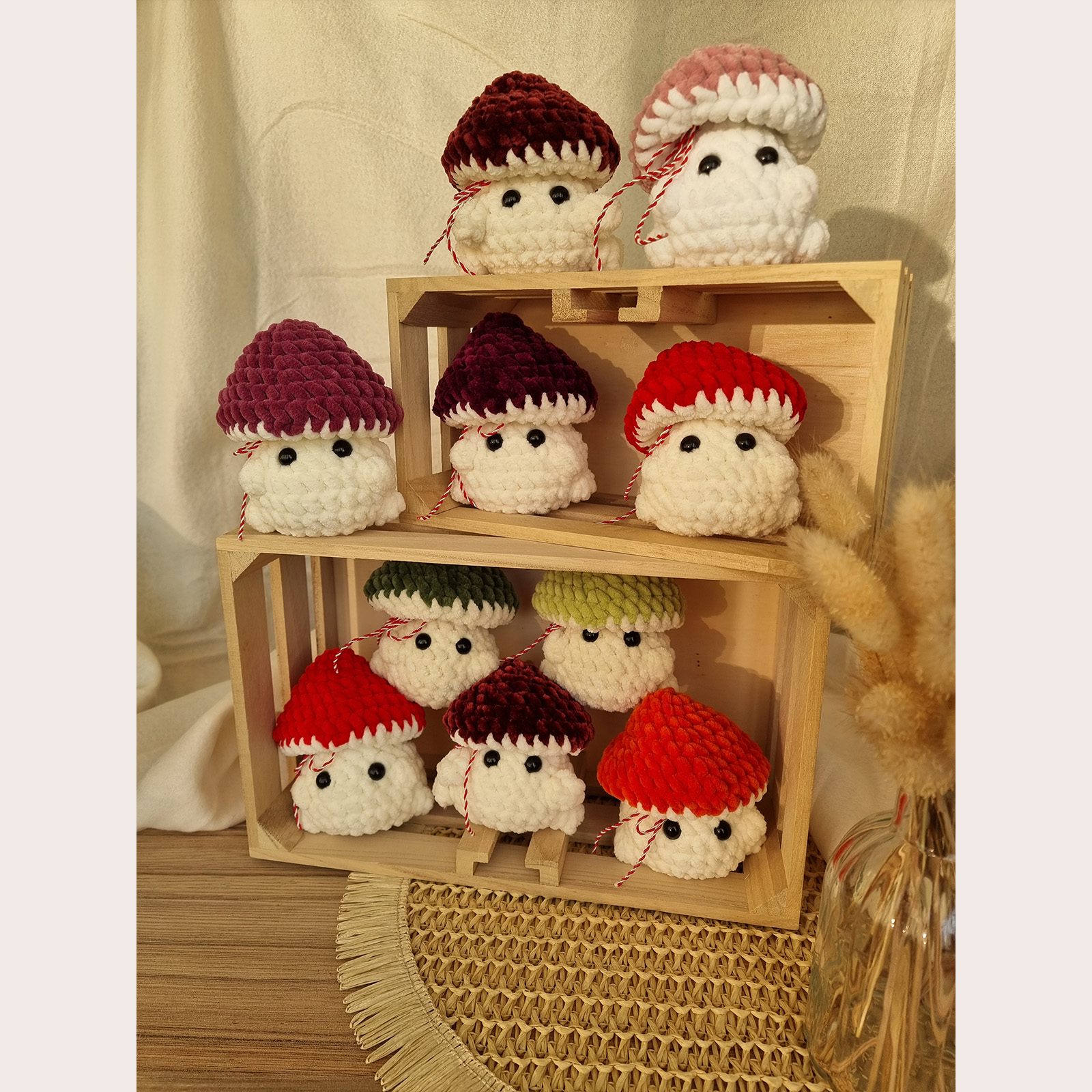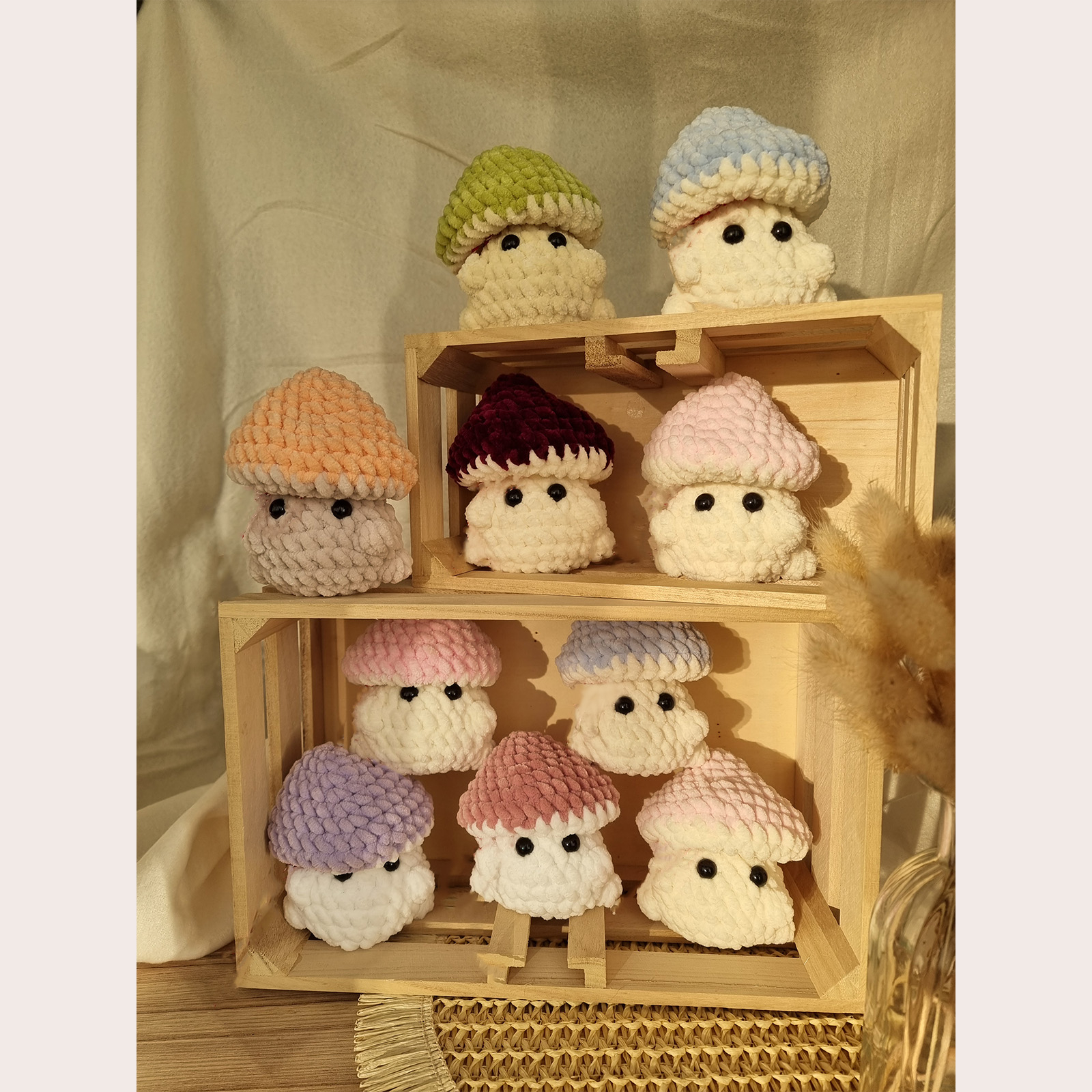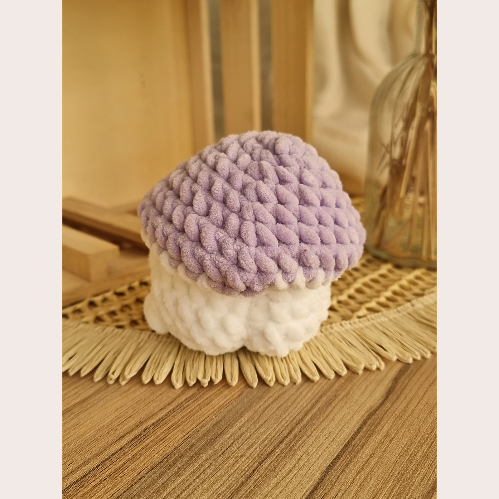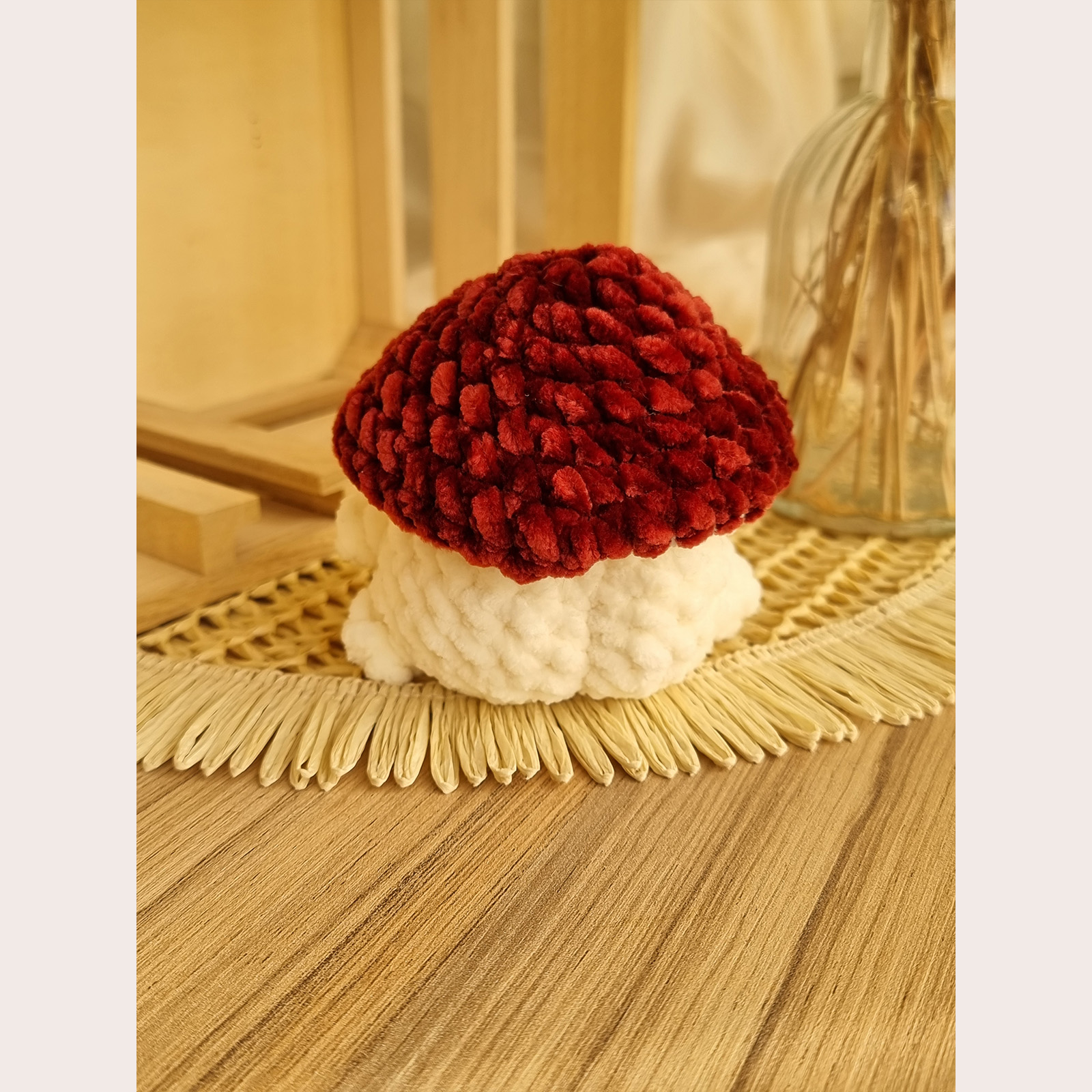 O ciupercuță croșetată manual, gata să aducă zâmbete cu surpriza ei amuzantă: la spate are un fund simpatic! Este perfectă pentru cadouri haioase sau decor cozy în cameră. Se poate realiza pe orice culoare – te rugăm să specifici culoarea dorită atunci când plasezi comanda.