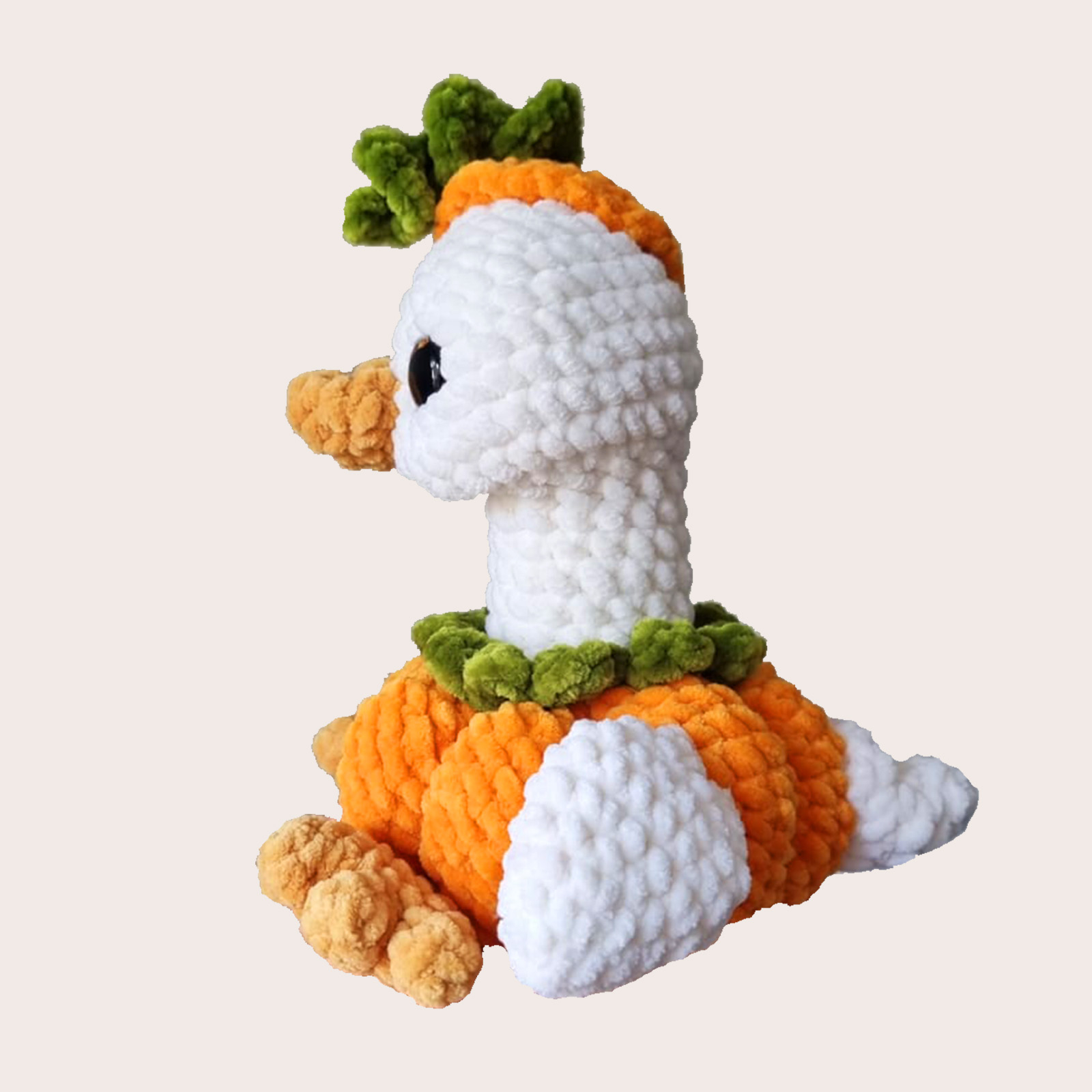 Rățușcă croșetată manual din fir moale de catifea, cu umplutură specială pentru jucării, hipoalergenică. Ochii sunt prinși cu dispozitiv de siguranță pentru copii.
