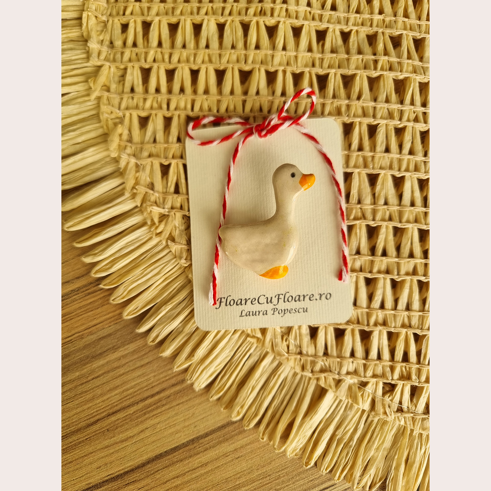 Această broșă mărțișor este realizată manual din lut ceramic cu uscare la aer, modelată cu grijă și atenție la fiecare detaliu. După uscare, piesa este pictată manual, ceea ce face ca fiecare broșă să fie unică. Finisajul lucios din rășină îi oferă un aspect elegant, intensifică culorile și asigură o protecție suplimentară în timp.