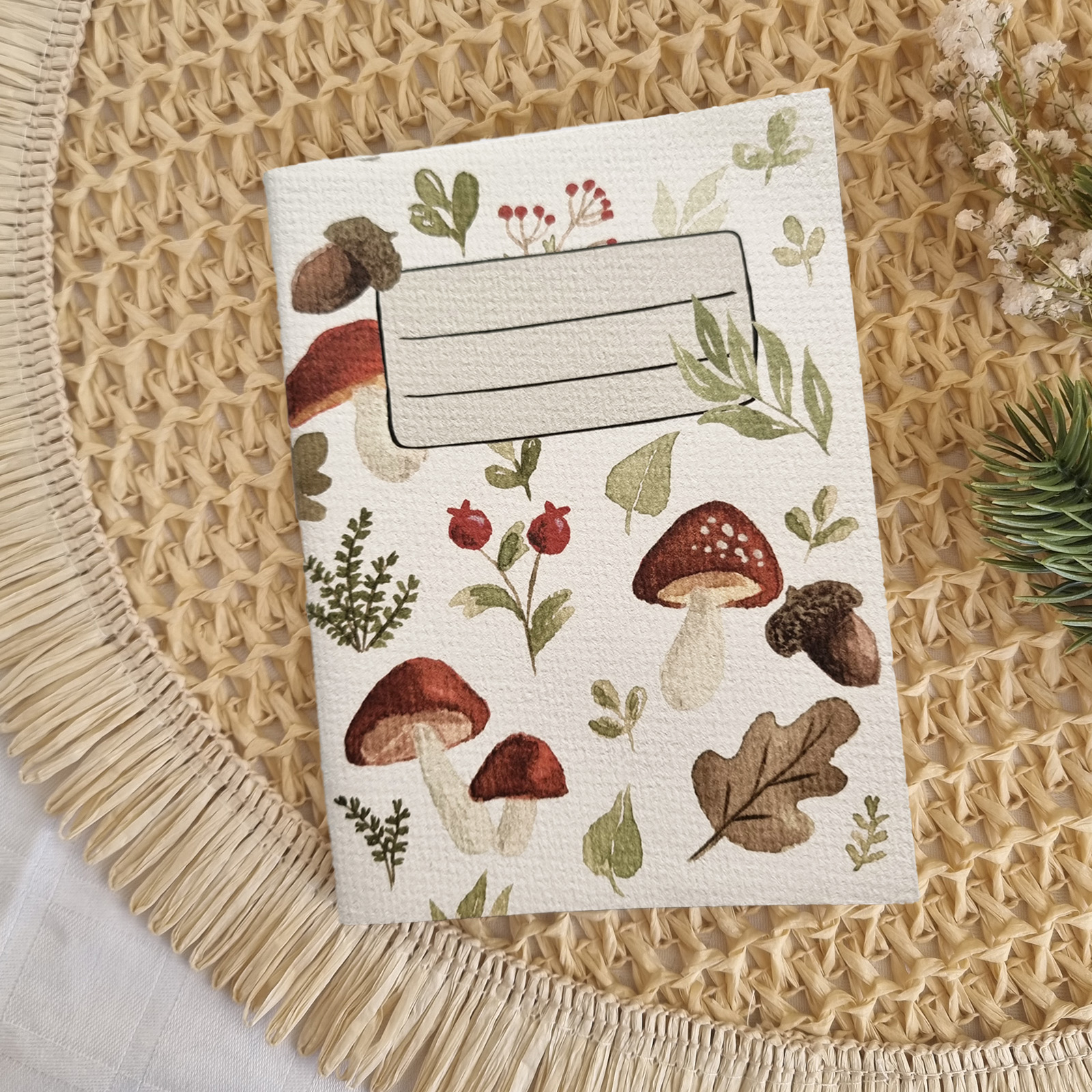 Agenda lucrată manual, cu ilustrații botanice. Dimensiunea compactă o face ușor de purtat oriunde.