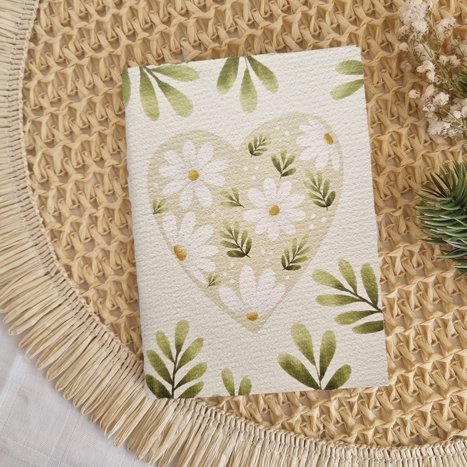 Agenda lucrată manual, cu ilustrații botanice. Dimensiunea compactă o face ușor de purtat oriunde.